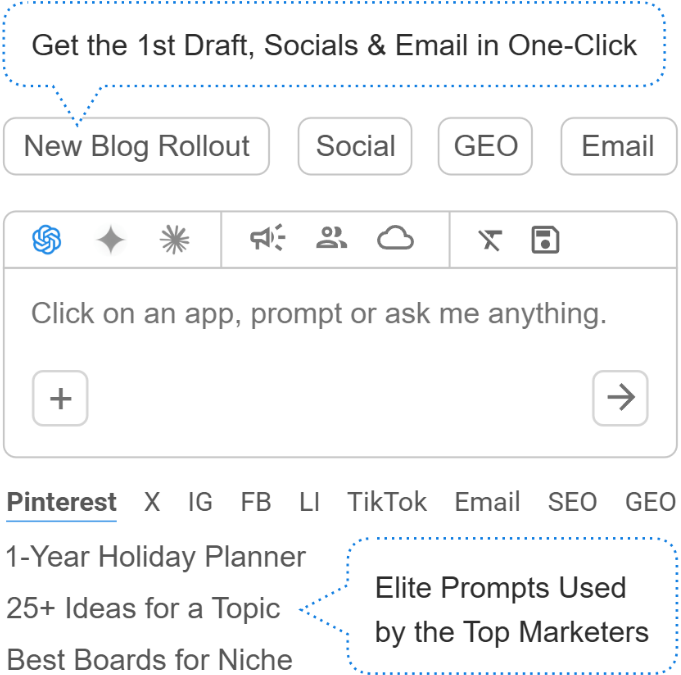 Our powerful 1-click apps produce agency-level results without the agency bill, and we have a prompt library filled with battle-tested prompts used by the world's top marketers (plus you get unlimited access to Claude, Gemini and ChatGPT).